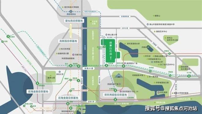 绿景白石洲位于深圳核心位置南山区的华侨城片区,深圳城市发展主轴——深南大道与大沙河创新走廊十字交汇点,依托华侨城人文艺术城区,链接后海总部基地、深圳湾超级总部基地、留仙洞总部基地、高新园总部基地四大总部基地。