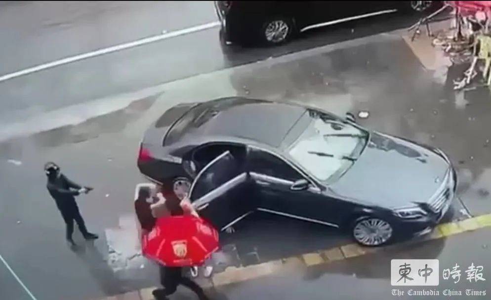 《柬中时报》从警方接获闭路电视画面显示,事发前,受害者等人从西港亚多利娱乐城出来,准备乘坐一辆黑色汽车离开,戴着头盔的一名黑衣男子骑摩托车靠近,下车走到受害者旁边当众拔枪射击。