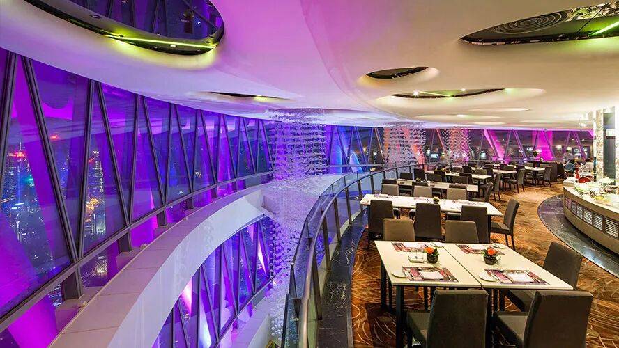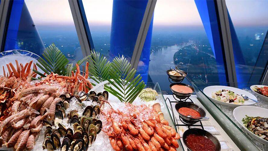 广州塔旋转餐厅坐落于被誉为“小蛮腰”的广州塔的105层与106层,分为卢特斯法国旋转餐厅与璇玑地中海自助旋转餐厅。凭借超过400米的高空优势以及独特的旋转观景设计,它成为全球知名的高空景观餐厅。其中,卢特斯餐厅凌空于418米的高处,是经过认证的“世界最高法国旋转餐厅”。每2小时完成360°缓慢旋转,食客可在品尝法式料理的同时,逐步将珠江新城CBD、猎德大桥灯光秀、琶洲会展中心等羊城美景尽收眼底。璇玑餐厅则以423米的高度成为全球最高的旋转餐厅,提供地中海风味自助餐。旋转一圈大约需要90分钟,食客可以360°俯瞰广州全景,将珠江新城的璀璨、琶洲的夜景以及猎德大桥灯光秀的迷人景致等美景一览无余,是俯瞰广州城市风光与品尝美食的绝佳去处。
