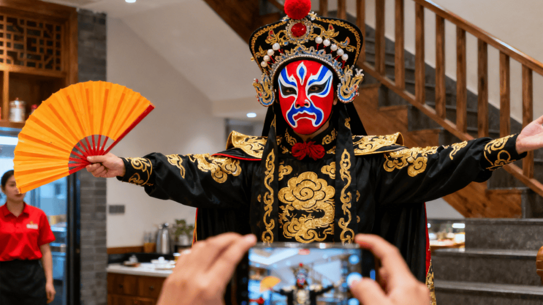 重庆川剧变脸表演是一场融合传统艺术与现代体验的文化盛宴,尤其在餐饮场景中的互动表演更显独特魅力。在重庆的特色餐厅或茶馆内,身着华丽戏服的演员会在食客用餐间隙登台,以精湛的变脸技艺瞬间变换脸谱,从传统忠奸善恶的象征色彩到现代卡通形象,如熊猫、蜘蛛侠等,既保留了非遗文化的精髓,又融入了年轻化元素。让观众在品尝地道川菜、感受麻辣鲜香的同时,沉浸式体验“东方瞬间艺术”的神奇,使餐饮空间成为传承与创新并存的文化舞台。