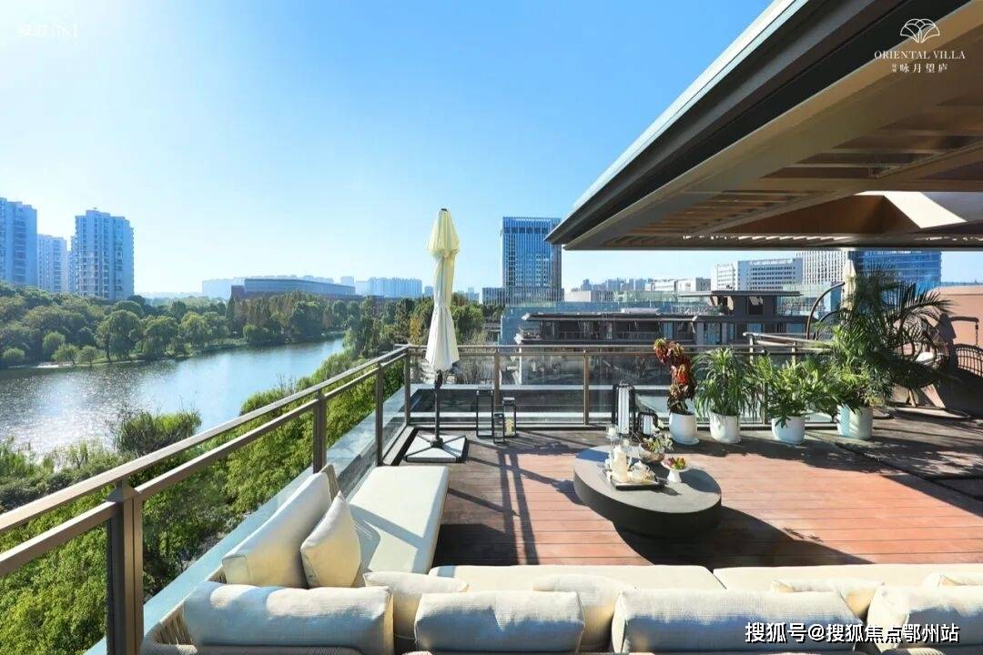 这样的高颜值低密,紧紧贴着约400米的水岸线,在咏月望庐的楼上楼下,都能欣赏到这片像湖一般的水岸风光。