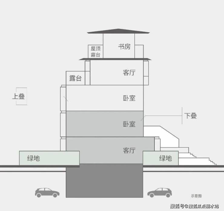 创新叠加组合,下叠二层与上叠三层可设置为卧室,“静区”相连,互不打扰,把与邻居之间的偶然尴尬化于无形。