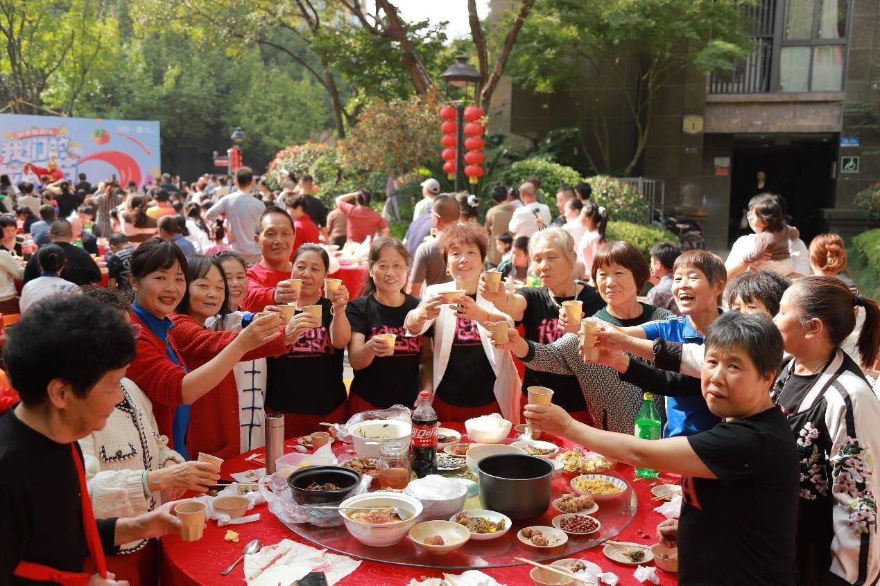 杭州龙湖香醍溪岸的小区楼下,七十张圆桌沿路蜿蜒铺开,七百多位业主围坐一堂。餐桌上如同展开一幅中国美食地图:东北饺子、湖南小炒、广东煲汤、本地醋鱼……这不止是一场宴席,更是一场流动的故乡记忆。这是“龙民节”的经典场景,这个已延续十一年的活动,早已超越社区活动的范畴,成为一种温情的仪式。
