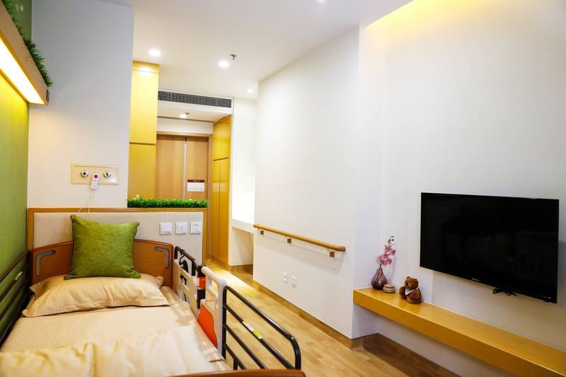 设施亮点:房间是按照宾馆标准设计的,有单人间和双人间。每个房间里都有液晶电视、空调、浴霸,24小时有热水,还有独立卫生间和智能呼叫系统,老人有需求一按铃就能有人来。公共区域也很全,有养生盐屋、阅览室、电脑室、棋牌室、多功能厅、KTV娱乐室,老人平时休闲、解闷儿都有地方去。