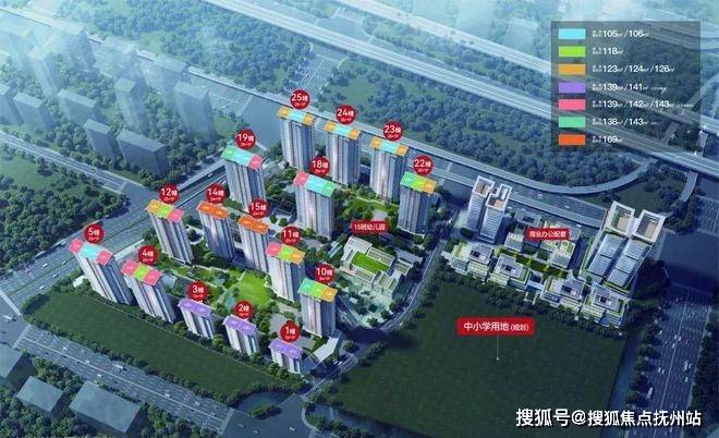 建发·云城之上规划16幢小高层➕高层住宅,包含1幢11F、2幢17F、3幢25F、10幢26F,以及5幢4-20F商业办公楼和1座幼儿园。