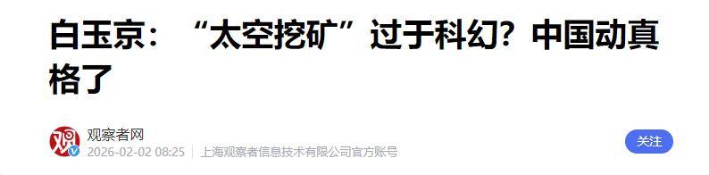 再是天问探测器去探测火星,探索更远的宇宙;现在,轮到天宫相关计划登场,聚焦太空采矿,一步步朝着宇宙深处迈进。